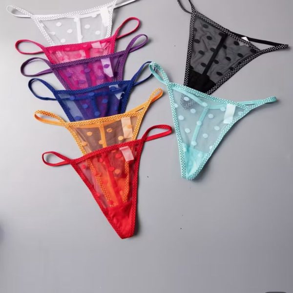- Design: One-piece bodysuit with a halter neckline, featuring multiple cut-out sections and a crisscross front detail, made of sheer lace with a dotted pattern.