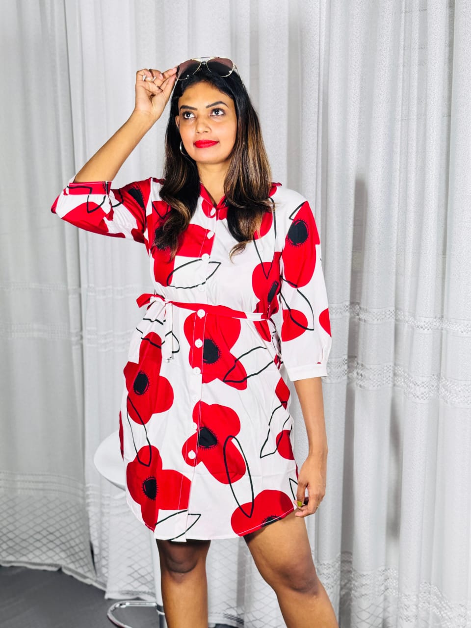Be the first to review “Women’s Red & White Floral Print Shirt Dress” Cancel reply
